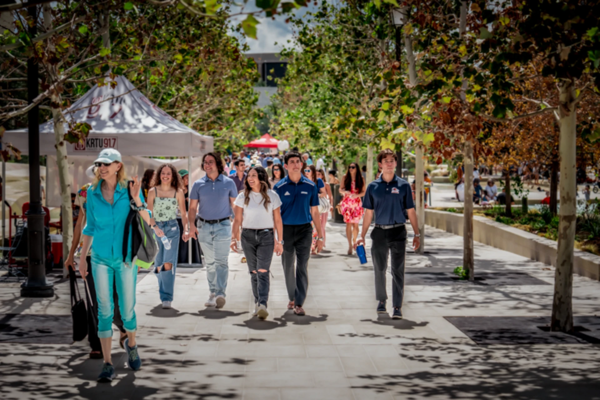 - Outdoor shaded plazas with shaded seating and food trucks, open daily